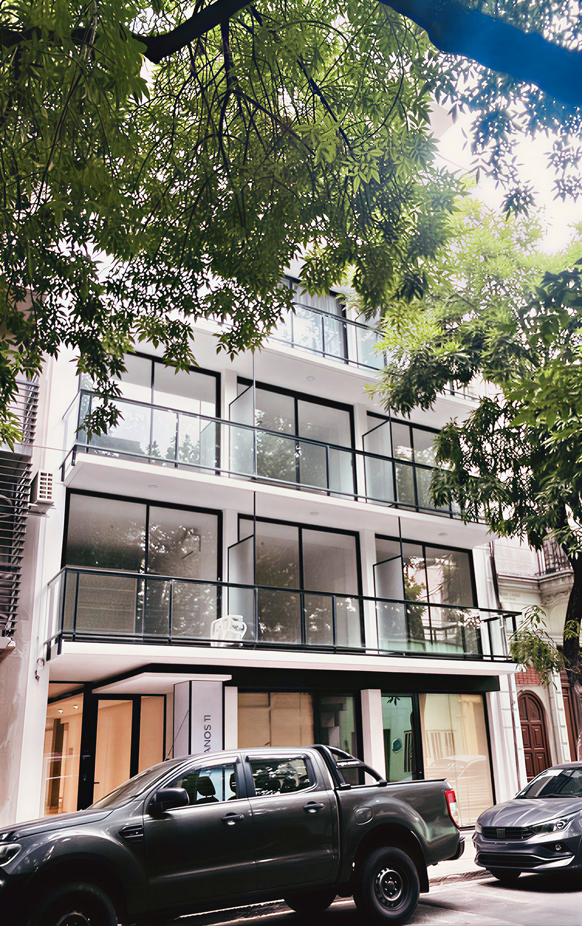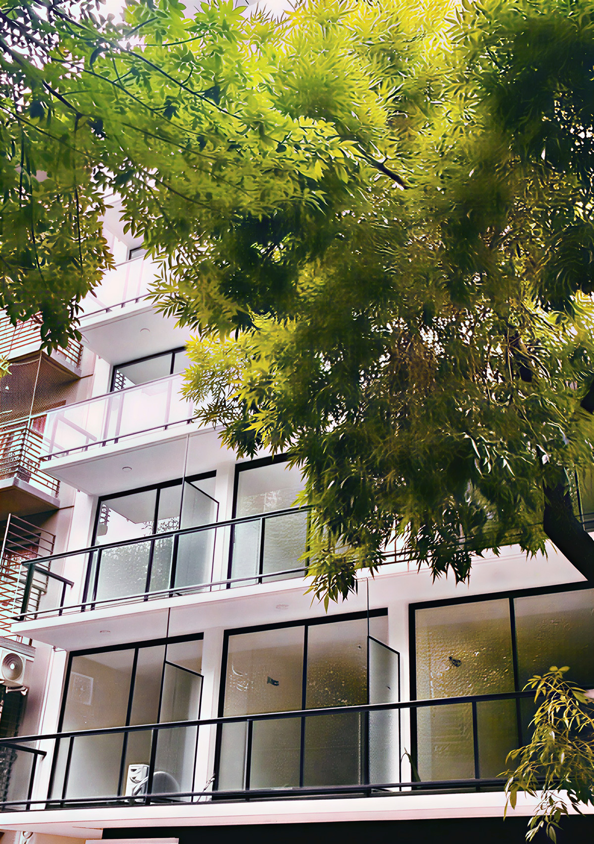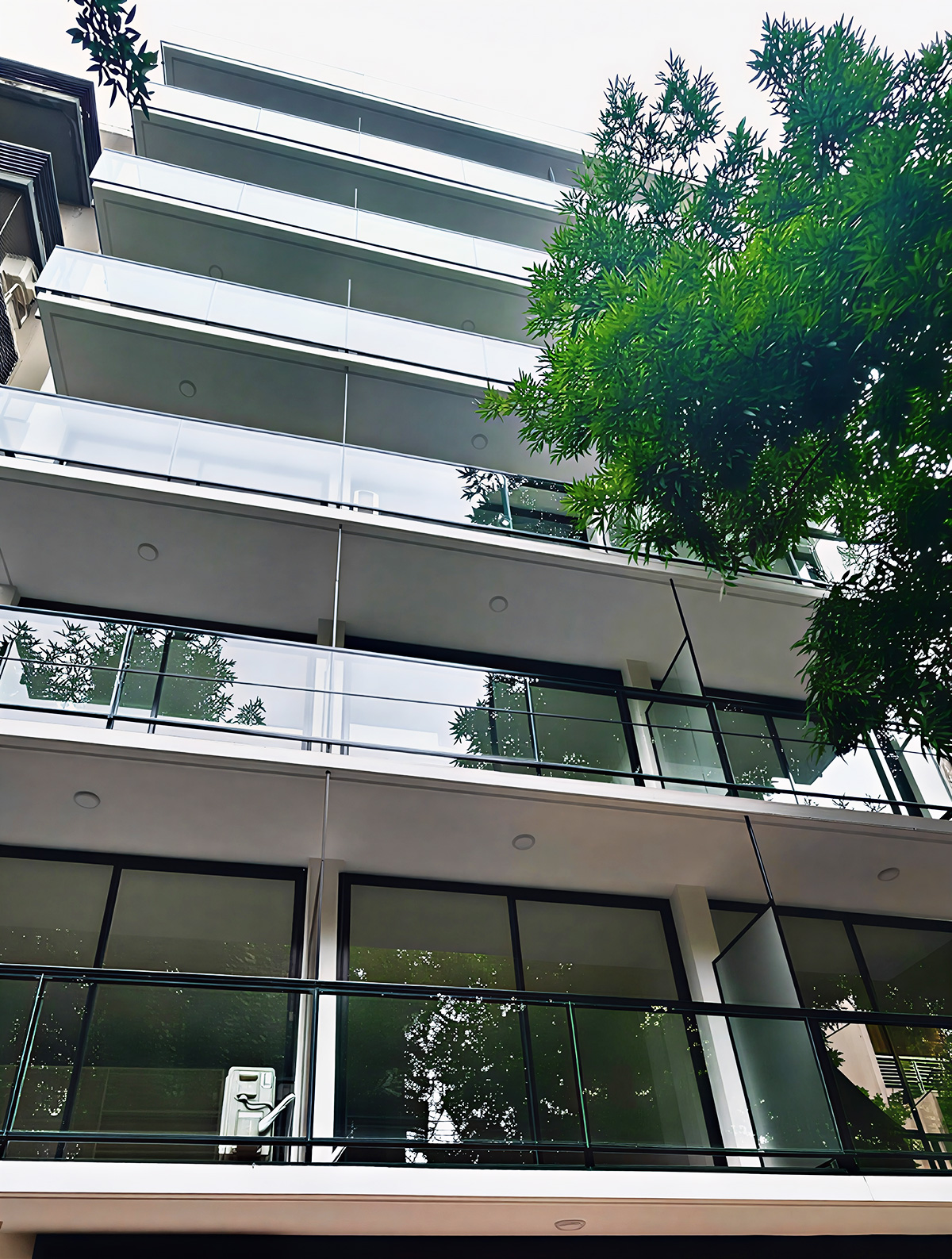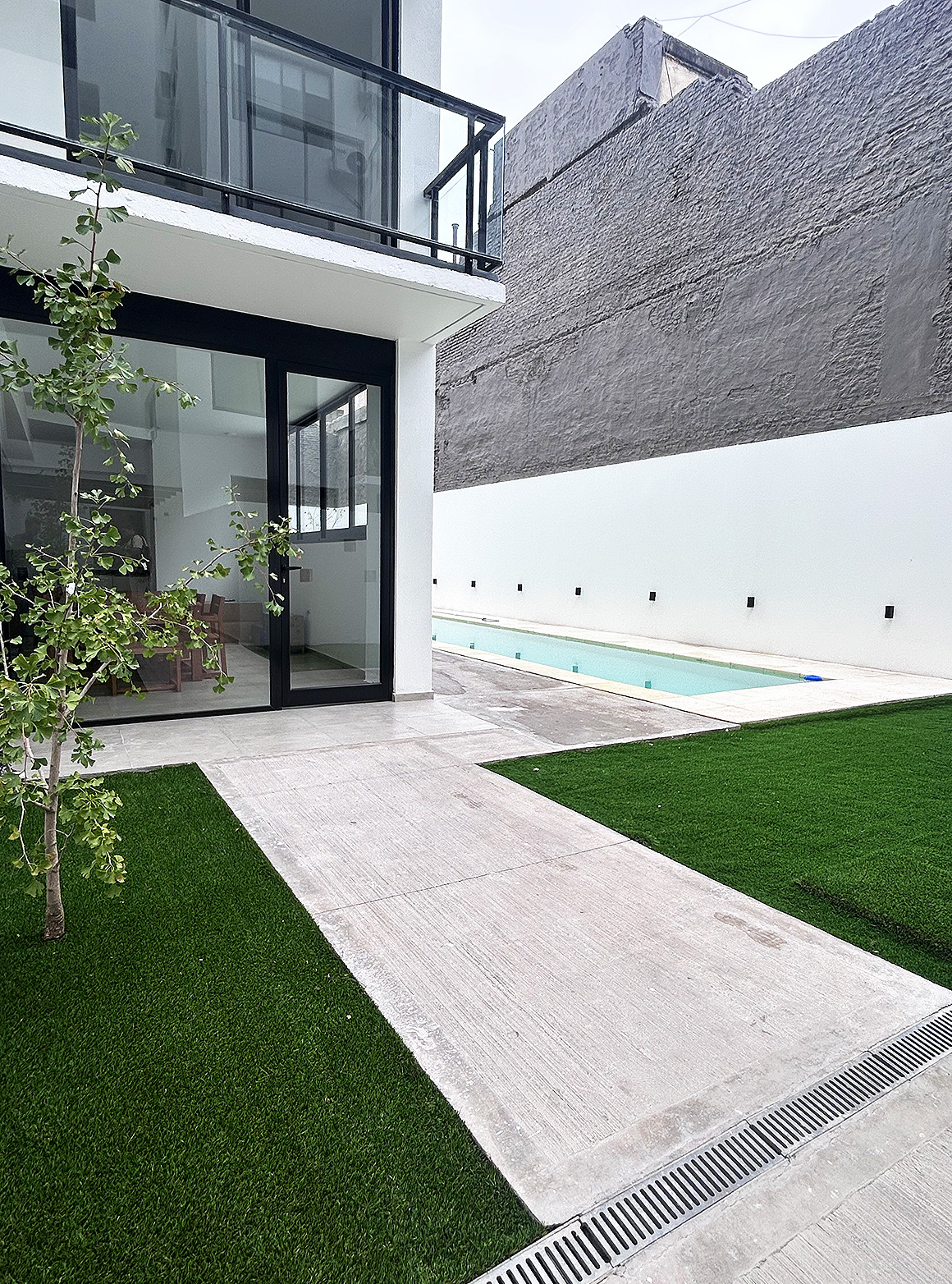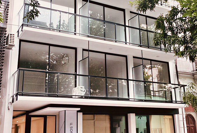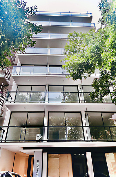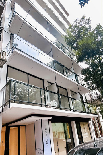 - Baranda vidriada, pasamanos y estructura en aluminio anodizado natural.